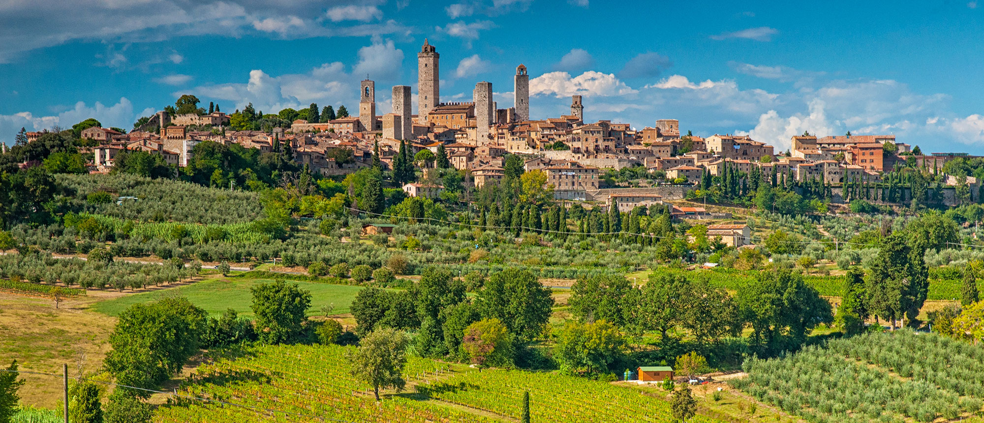 Located in central Italy, Tuscany is home to some of the country’s most important wines with a long history dating back to the Etruscans. The region is full of pristine mountains (25%), hills (65%) and flatlands (8%) and enjoys a mostly continental climate, and unique soils – Galestro, for example, which is rocky and shaly and has excellent draining properties – advantageous to wine production. The region’s premier grape – Sangiovese – does especially well here, unfurling full, velvety layers of iris, violet and vanilla aromas, thanks to the aforementioned hills, which allow for good elevation and exposure but especially great day/night temperature swings. There are many clones, such as Sangiovese Grosso, Brunello, Morellino and Prugnolo Gentile that have evolved over the years to the different terroirs of Montalcino, Scansano, Montepulciano and Chianti. As for whites, apart from the traditional Trebbianos and Malvasias, the most famous and ancient variety is Vernaccia di San Gimignano, grown in close proximity to the medieval village of the same name and mentioned even by Dante in the Inferno. It was also the first Italian DOC, nominated in 1966 and promoted to DOCG status in 1993. Other grapes are grown here with excellent often legendary results as well: Chardonnay, Merlot and Cabernet Sauvignon (of Bolgheri fame) and Pinot Noir to name just a few. The area under vine extends 57,861 hectares (143,000 acres), with 2.7 million hectoliters of wine being produced per year.